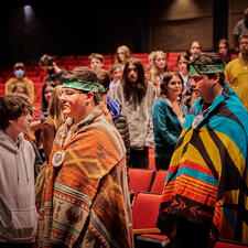 On April 27, 2022, at Abbotsford Arts Centre, the Mamele’awt Community Indigenous Education Centre honoured the 2022 Indigenous Role Models. Before entering, Role Models were covered with a blanket as a way of claiming the students, giving them a warm hug, and helping them on their journey forward, along with a headband to remind them to have good thoughts and a good mind. Chris Silver, Councillor of Semá:th First Nation began the Ceremony with a welcoming song and explained the importance of the Ceremony. Mr. Perry Smith, Director of Curriculum, was the traditional speaker and further explained the meaning of the day and how protocols are in place to ensure the Ceremony is done well, with a good heart and a good mind. Students were brought in by Tyrone Thomas, Jessi Old Coyote, and Tlatsemot leading in an honouring song as the students were brought forward into the space. Each student was honoured on stage by either their Indigenous Support Worker or Teacher for Indigenous Success, who expressed each student's hard work, dedication to culture, and future goals which brought them to be honoured as Role Models. The day was filled with gratitude and inspiration as we celebrate these students' accomplishments. The Honouring Ceremony was live-streamed and can be viewed on the Abbotsford School District YouTube page.